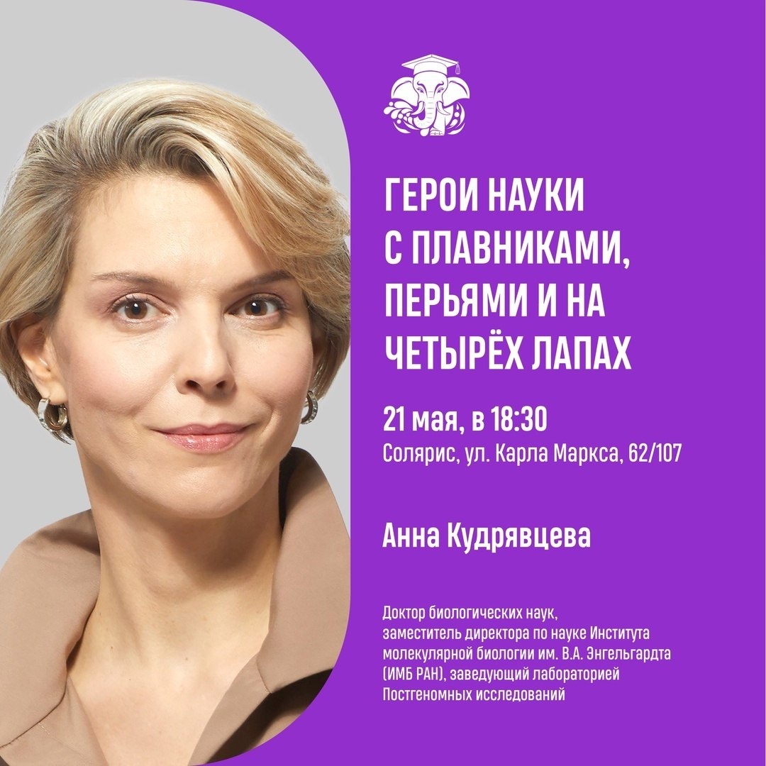 Ивановцы смогут узнать о четвероногих героях науки Очередная встреча ивановцев со «СЛОНом» пройдет 21 мая. На популярном просветительском проекте доктор биологических наук Анна Кудрявцева выступит с лекцией «Герой науки с перьями, плавниками и на четырех лапах» (14+). Это рассказ о легендах, героях науки, которые помогают ученым каждый день продвигаться в фундаментальных исследованиях и в разработке лекарств — о лабораторных животных. Слушатели смогут узнать об известных помощниках ученых и о тех, кто пока остается в тени. Именно благодаря животным, живущим в лабораториях и на экспериментальных площадках, в мире постоянно совершаются открытия, позволяющие лучше понять, как устроена природа и как работает наш организм. Лекция традиционно пройдет в «Солярисе». Начало в 18:00. Регистрация обязательна. Вторая обувь тоже. Фото: «СЛОН» // ВКонтакте