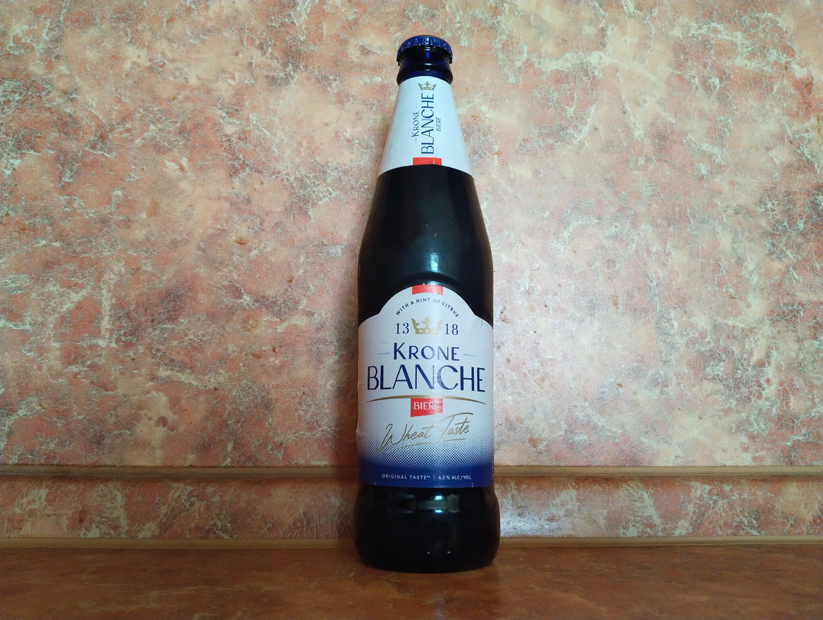 На майских праздниках отправились с друзьями бухать на природу культурно покушать шашлыки, умеренно выпить и провести время в хорошей компании. И были женщины, которые решительно забраковали волковскую ипушку (ибо горько и крепко), которой я хотел взять пару ящиков - дабы хватило на всех. Ну и взяли мы для барышень всякого непонятного массмаркетовского, исходя из пожеланий оных. Среди всяких жигулей в жёлтой банке, винища из пакетов и непонятных настоек фиг знает с чем было ЭТО - Krone Blanche Biere. После всех мероприятий, когда уже собирались домой, отыскал нетронутую бутылочку данного пивного напитка от Балтики и решил - унесу её домой и обзор запилю - интересно, что там так понравилось прекрасному полу. А дома (через неделю, когда отважился на дегустацию) была жесть))) И это мягко сказано!!! Krone Blanche Biere – оригинальный пшеничный сорт с изюминкой во вкусе. Освежающее сочетание пшеничной основы и ненавязчивых нот цитруса и кориандра дает возможность насладиться поистине изя
