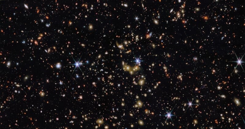 Телескоп Джеймса Уэбба представил новую потрясающую фотоподборку космоса с мега-разрешением в 167 мегапикселей. Последняя работа демонстрирует невероятные возможности этого 10-миллиардного инструментального чуда, позволяя фотографам и любителям астрономии заглянуть в самые далекие уголки Вселенной. На этом снимке видно множество космических объектов: от звезд внутри Млечного Пути до галактик, находящихся на расстоянии миллиардов световых лет. В одной только этой фотографии можно увидеть тысячи галактик, причем максимальная их концентрация расположена в центре нового изображения Уэбба. Центральный кластер представляет особый интерес, так как галактики ‘светятся бело-золотистым светом’, как объясняет Европейское космическое агентство (ESA). “Мы видим эту группу галактик такой, какой она была, когда Вселенной было 6,5 миллиарда лет, немного меньше половины текущего возраста Вселенной”, - добавляет ESA. “Это изображение является визуальным пиршеством галактик. Не торопитесь, чтобы изучить