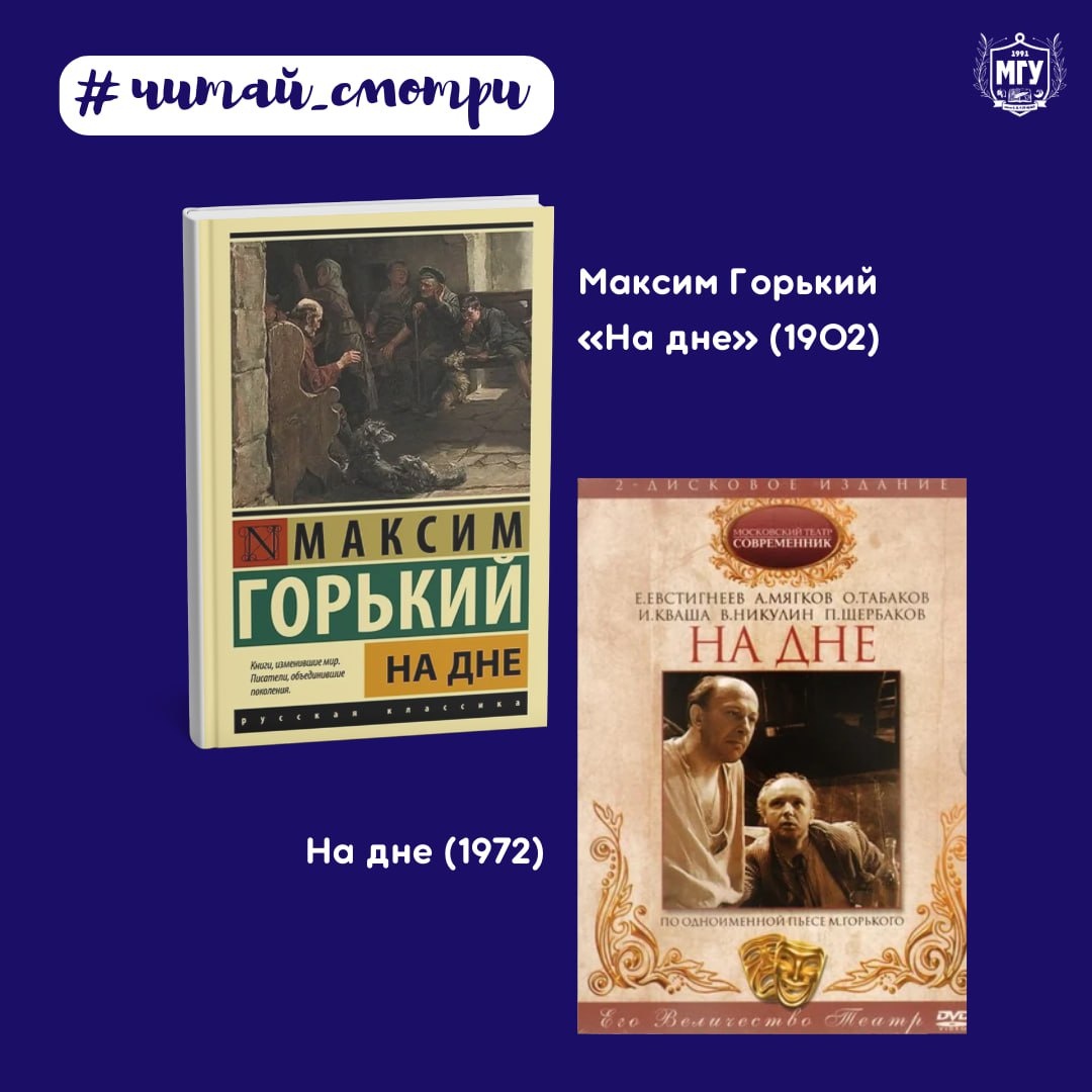 Когда нет будущего — остаётся только правда. Книга: Максим Горький «На дне» (1902) Пьеса, в которой правда бьёт сильнее, чем любые удары. Это рассказ о тех, кто живёт «внизу» — без надежды, без иллюзий, но с жаждой человеческого достоинства. Спектакль: На дне (1972) Телеэксперимент на грани театра и кино, в котором каждый образ создан точно и выразительно. Знаменитая постановка Леонида Варпаховского передаёт не только текст Горького, но и его эмоциональную глубину.