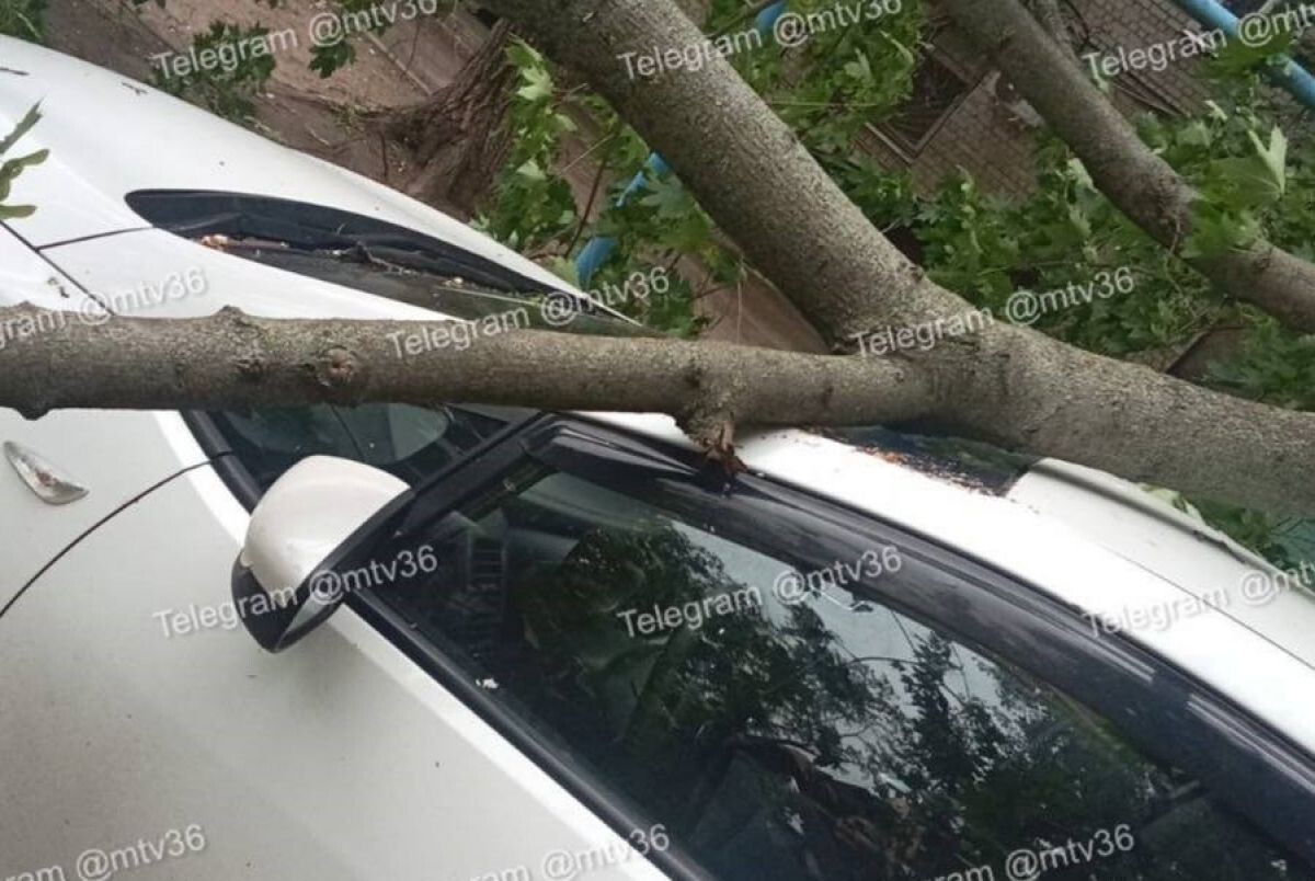 В Воронеже сильный порыв ветра "уронил" ветку дерева на автомобили