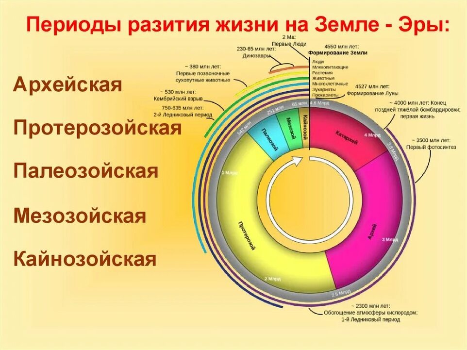 Вот основные эры развития Земли, каждая из которых оставила свой неизгладимый след: