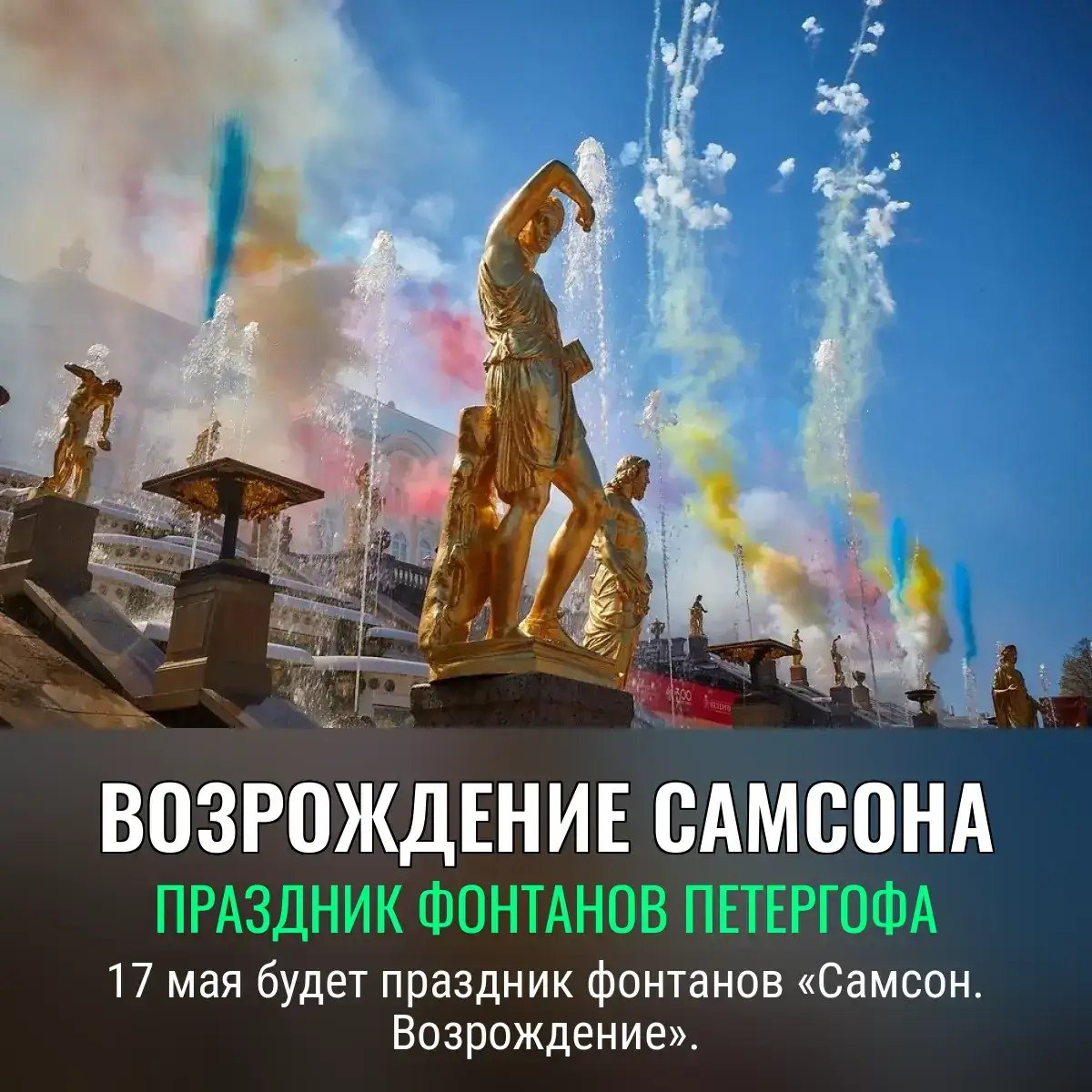 🌊 17 мая 2025 года Нижний парк Петергофа взорвется эмоциями на празднике фонтанов «Самсон