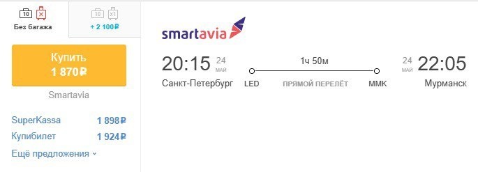 ✈️Санкт-Петербург - Мурманск за 1870 рублей