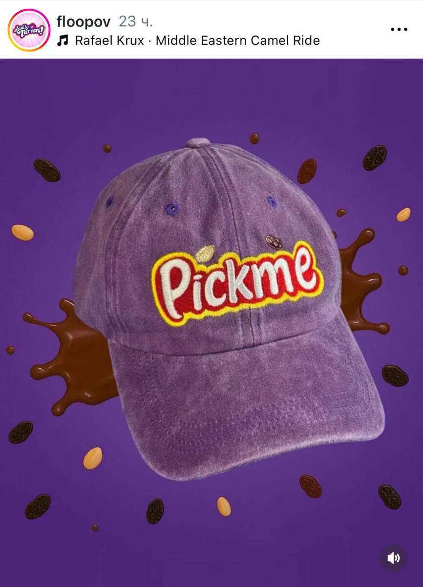 Автор легендарного дропа Totally tarism выпустил кепки Pickme, вдохновлённые шоколадными батончиками Picnic. Цена — 4500 рублей. Пикми уже выстраиваются в очередь 😎