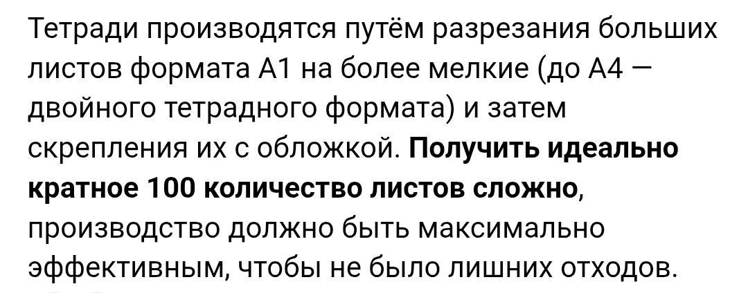 С вами неинтересно, вы шибко умные 🥰 Но ответ, конечно, в удобстве сборки. На лист А1 вмещается 8 А4. 96 нацело делится на 8, а 100 — нет. Живите теперь с этим знанием 😉