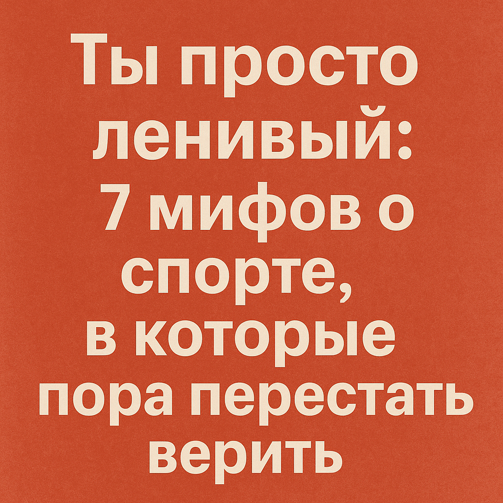 Сколько раз ты слышал: «У меня нет времени», «Это не для меня», «Я не люблю спорт»? Мы собрали главные отмазки, которые мешают миллионам людей начать заботиться о себе — и разнесли их в пух и прах. 1. «У меня нет времени» А лента в TikTok или YouTube сама себя прокручивает? 10–15 минут в день — это не спорт, это личная гигиена. Можно делать зарядку, пока варится кофе. Или поставить планку во время сериала. Нет времени — значит, нет приоритетов. 2. «Я слишком стар/а для этого» Серьёзно? Посмотри на бабушек, которые занимаются йогой на пенсии и бегают марафоны в 70. Возраст — это не приговор. Он начинается в голове. Начни с малого. И будь примером для своих детей и внуков. 3. «У меня нет формы/зала/денег» Ты родился с телом — значит, у тебя уже есть всё, что нужно. Спорт дома — это нормально. Приложений куча, YouTube в помощь. Главное — не покупать коврик за 5 тысяч, а просто начать двигаться. 4. «У меня нет мотивации» И не будет. Мотивация — это миф. Действие рождает мотивацию, а не