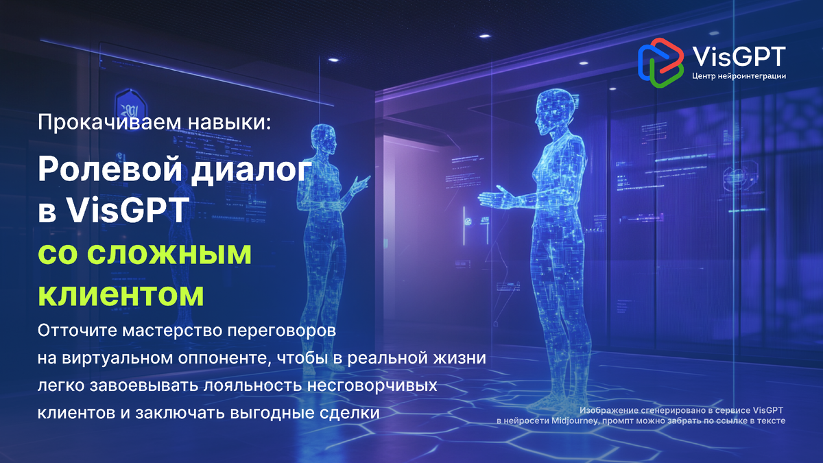 Платформа VisGPT с доступом к передовым нейросетевым моделям предлагает инновационный подход к развитию навыков переговоров. Используя ИИ, вы можете создать реалистичные сценарии переговоров с «токсичными» собеседниками и отрабатывать различные техники коммуникации без рисков для реального бизнеса.