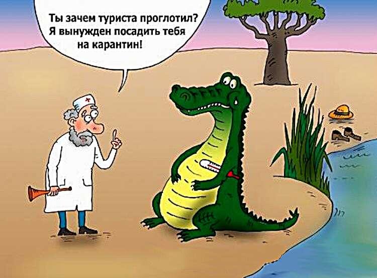 Юмор и приколы про известного сказочного доктора, попадающего в забавные ситуации, усилиями российских карикатуристов. Многие художники любят вдохновляться знакомыми сюжетами и создавать свои, новые версии сказок, уже для взрослых. Карикатуры на эту тему всегда были и будут популярны у зрителей. Ведь все мы с детства любим сказки. Мне очень нравится смотреть такие занятные комиксы, сделанные на новый лад. Особенно, когда персонажи ведут себя непредсказуемо и забавляют читателей. В этот раз выпуск будет не по конкретной сказке, а про определённого персонажа - Айболита из сказки Корнея Чуковского. Карикатуристам удаётся удивить нестандартными сюжетными поворотами. Давайте глянем, что получилось, вас ждут забавные иллюстрации. Приятного чтения и настроения) Тарасенко Валерий придумал такую иллюстрацию про крокодила - прожорливое брюшко. Сергей Корсун представил разбушевавшегося доктора. Точнее сразу двух. Вообще, когда собирала материал, заметила, что чаще всего, шутят именно над пришиван