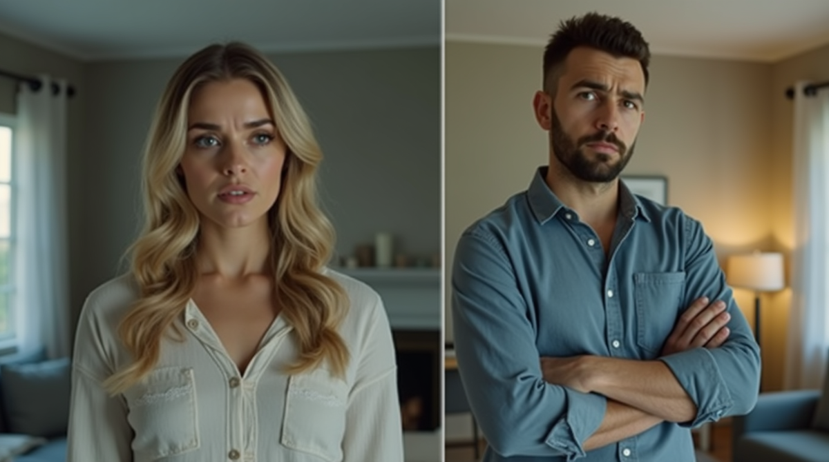 Сергей сидел на диване, опустив голову. Его плечи были сгорблены, словно он пытался спрятаться от её слов. За окном шёл мелкий дождь, и капли стучали по подоконнику, как метроном, отсчитывающий их последние минуты вместе.