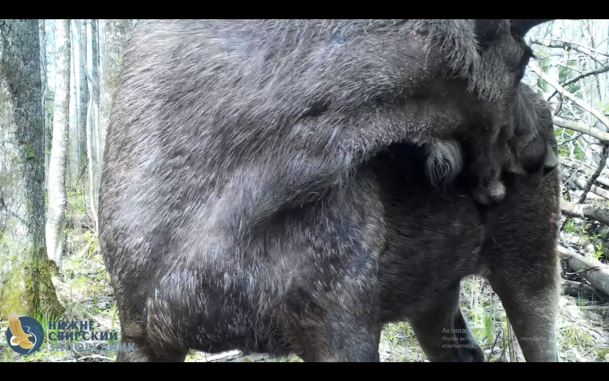 В Нижне-Свирском заповеднике лось привел себя в порядок