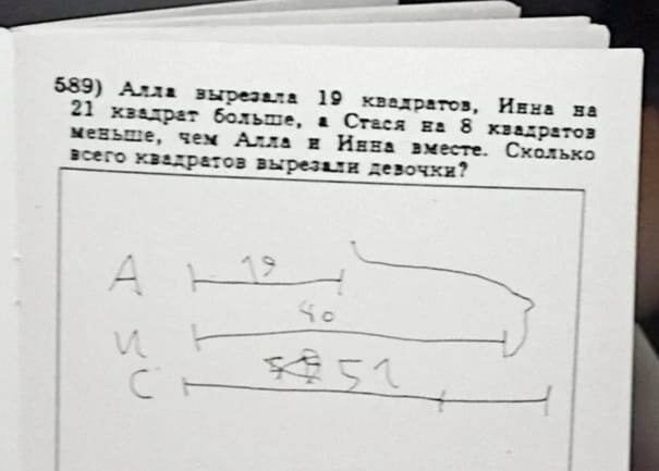 Я почему-то (не знаю, почему) решила, что у Стаси квадратов как у Аллы и Инны вместе. И, когда увидела, что Гриша нашёл их общее количество, но почему-то записал 51, не поняла, с чего вдруг... И говорю, почему ты так делаешь?
