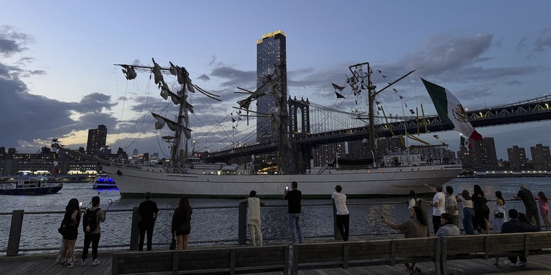 А у нас сегодня в очередной раз рубрика "И смех и грех". Без жертв, к сожалению, не обошлось, но всё остальное - просто предмет для фельетона. Все же слышали про Знаменитый Мексиканский Флот? Не знаю, что там у них на вооружении, наверное, пара баркасов и парусные шлюпки, а может, галеры? Впрочем, не будем ёрничать раньше времени. Давайте лучше посмотрим в википедии. Но, даже там информации оказалось крайне мало. Я насчитал что-то около 20 военных кораблей. В том числе, два транспортника и два фрегата. Что же касается парусов, то судя по сегодняшней новости, я угадал. Есть такие в строю. Итак, Нью-Йорк, Гудзон, набережная, Бруклинский мост. Люди гуляют, наслаждаясь выходыми. По акватории расскает корабль прям как из сказки про Ассоль. Что он там делает - доподлинно неизвестно. Я так полагаю, что кто-то увидел наши питерские "Алые паруса" и решил повторить. Но дальше всё пошло не по плану. Я так полагаю, мексиканцы приняли чрезмерное количество текилы, поскольку то ли мост вообще не за