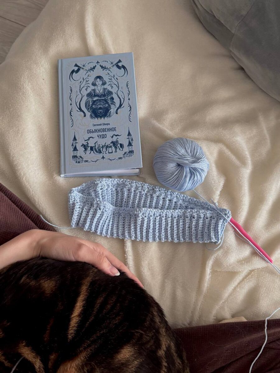 🤩 Рецепт идеального вечера воскресенья: 🤩 дождь за окном 🤩 вязание новой идеи 🤩 теплые котики 🤩 интересная книга Начала вязать хлопковый топик на лето, так люблю это дело, успокаивает и вдохновляет. В голове еще 2 крутых проекта, для которых я уже заказала кучу пряжи. Плакали мои денежки… После предыдущей книги «Пенсионный взнос за тридевятое царство» Оксаны Прохоровой с взрослыми сказками, я захотела еще почитать что-то похожее. 🤩 Тут как раз пришла кстати новинка МИФ, которую я недавно получила. «Обыкновенное чудо» и «Тень» Евгения Шварца - это сказки, которые предназначены для взрослых. Там есть много смыслов и намеков, которые детям не понять, от того веселее и интереснее их читать! Посмотрите, как идеально цвет пряжи сошелся с книгой 🤩