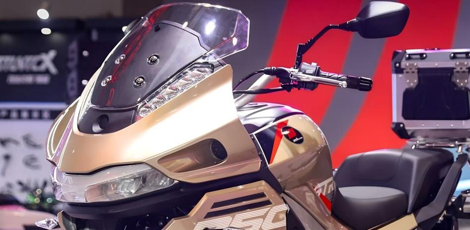 Эстетическую привлекательность Jedi Sport GT 750 определяет его большое горизонтальное светодиодное освещение, которое не только выглядит современно, но и обеспечивает отличную видимость в любых условиях. Это особенно важно для водителей, которые планируют использовать мотоцикл в качестве основного транспортного средства. Широкий верх обтекателя обеспечивает хорошую защиту от ветра, что делает поездки комфортными как в городских, так и в загородных условиях. Нерегулируемое ветровое стекло, хотя и довольно просторное, не перегружает общую конструкцию мотоцикла, сохраняя его стильный вид.