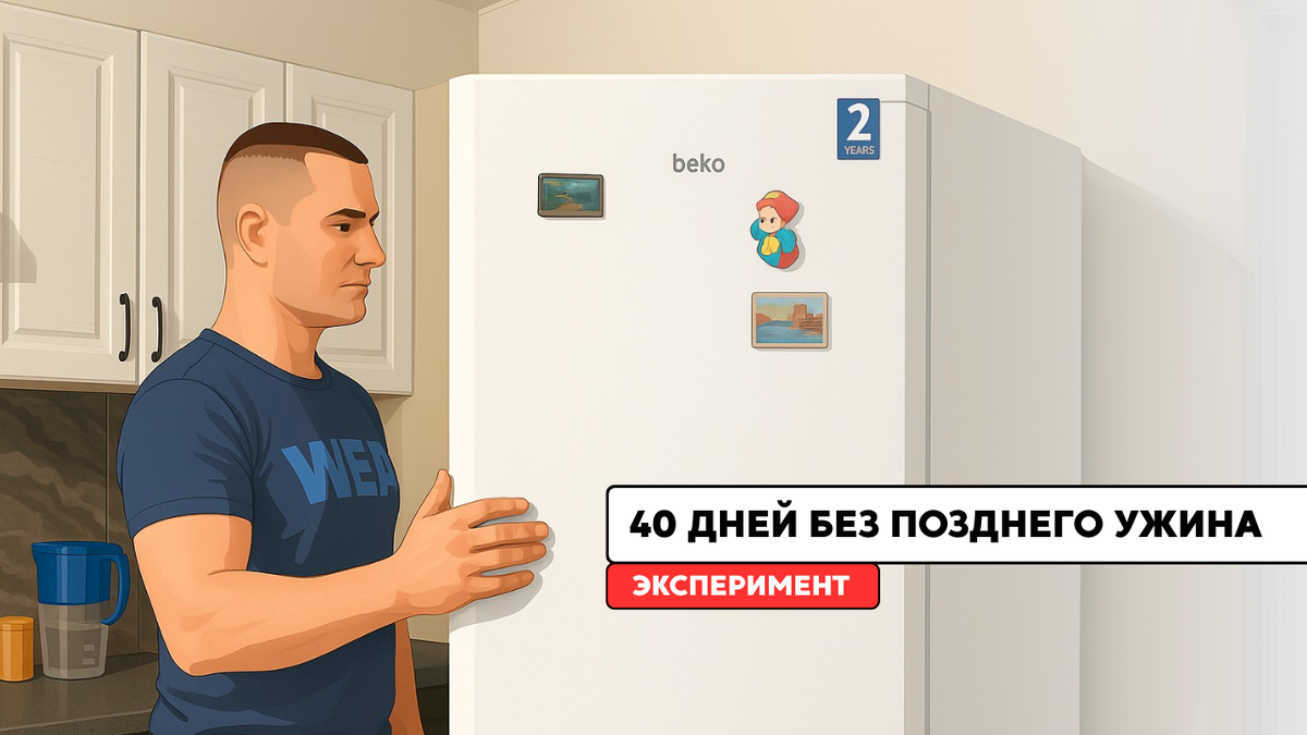 Просто — из интереса. Захотелось посмотреть, как это повлияет на тело, сон, настроение и вес. Без дополнительных диет, без заморочек. Только одно правило — после семи вечера никакой еды. Почему выбрал именно 19:00? Потому что до этого времени поужинать реально. А всё, что идёт позже — это обычно “на автомате”: чай с чем-то, перекусы, привычка что-то жевать под сериал. На старте вес — 93,4 кг.