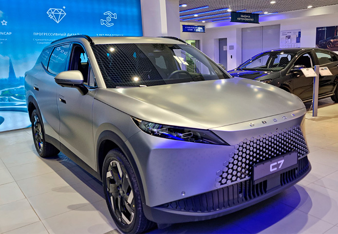 OMODA C7 - новый среднеразмерный кроссовер, построенный на платформе T1X. Автомобиль отличается современным дизайном с парящей линией крыши и характерным силуэтом.