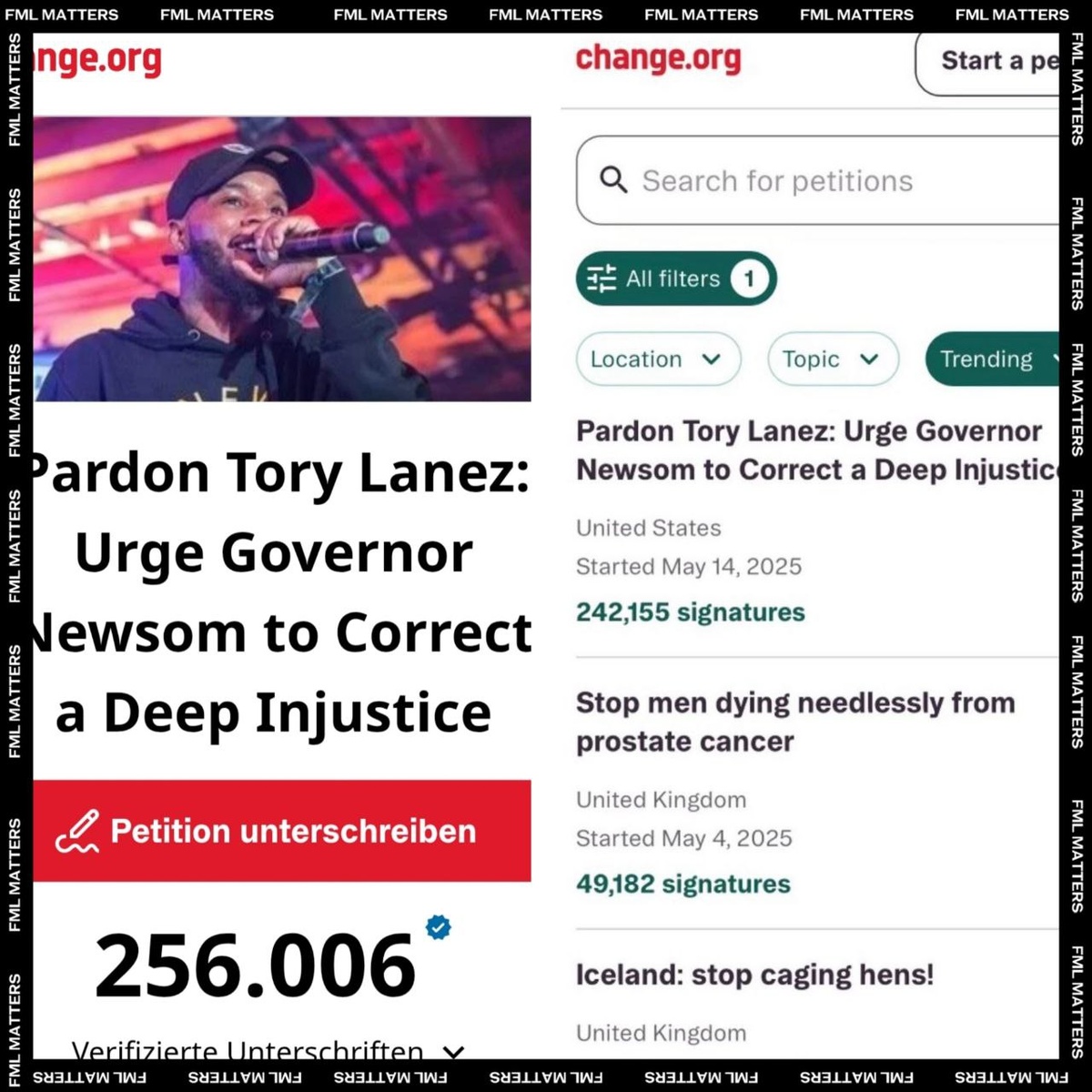 В ответ на пост ❗️ ПЕТИЦИЯ ЗА СВОБОДУ TORY LANEZ — САМАЯ ПОПУЛЯРНАЯ В МИРЕ! Петиция с просьбой помиловать рэпера стала самой просматриваемой на change.org. За двое суток петицию подписали более 255 тысяч человек, а также крупные звёзды публично поддержали её в соцсетях и сторисах: ➖Drake ➖Kanye West ➖The Game ➖Joyner Lucas ➖Ty Dolla $ign ➖A Boogie Wit da Hoodie ➖Amber Rose ➖Chris Brown ➖Trippie Redd 💀 FML MATTERS