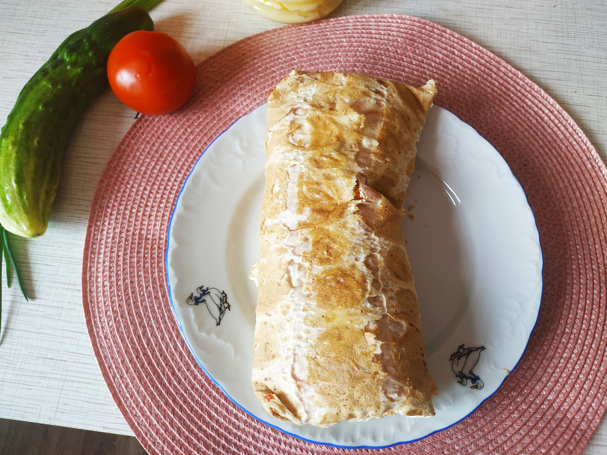 - Скручиваем и обжариваем с двух сторон на гриле или обычной сковороде без масла