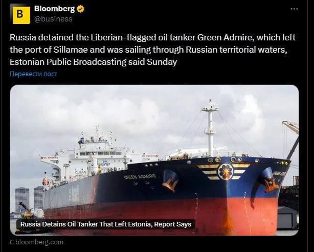 В ответ на пост Last month, Estonia introduced a new law 'allowing' them to harass Russian shipping in the Baltic Last week, they tried to seize a Gabon-flagged tanker carrying Russian oil Today, they learned that piracy has consequences