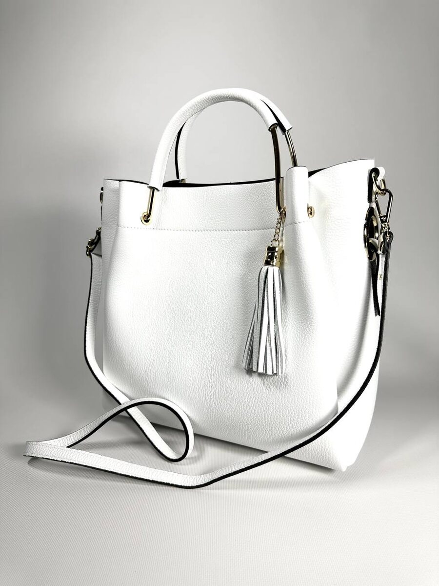Белоснежная сумка #verapelle с кожаной черной подкладкой.