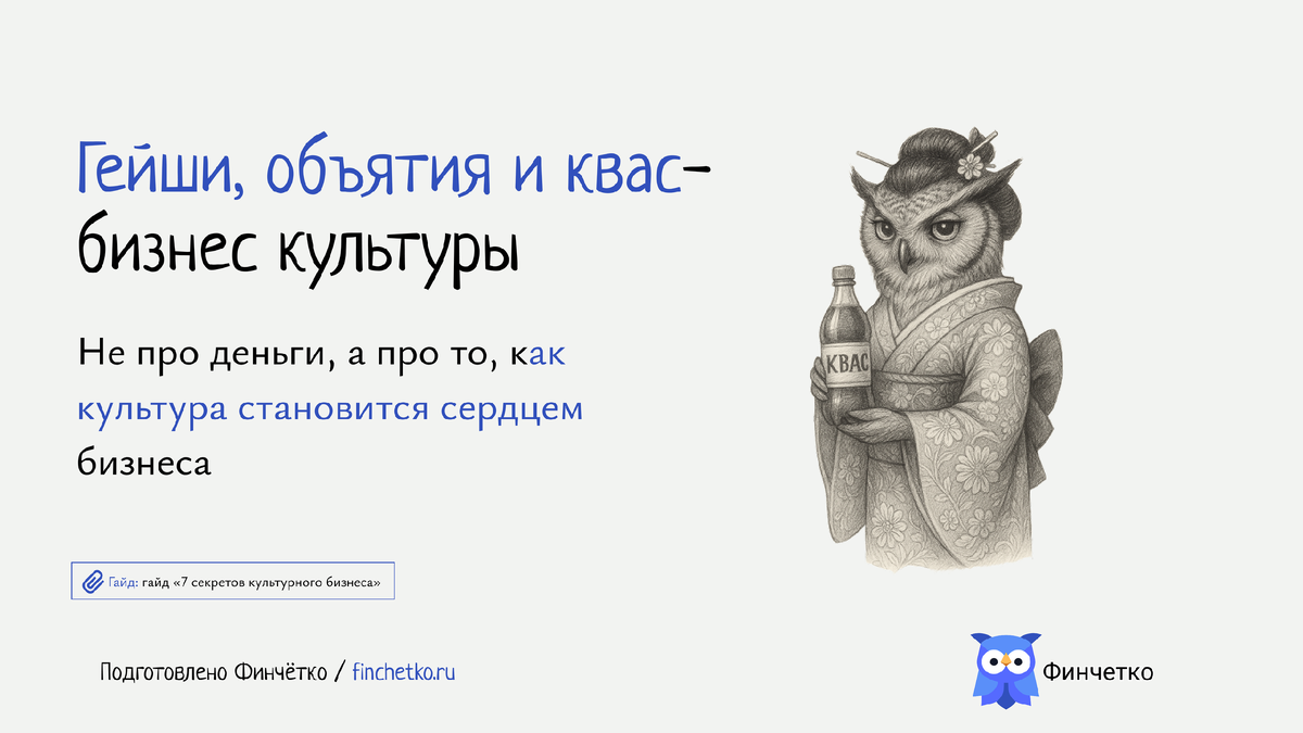 А теперь перенесём это в Россию. Спонтанные посиделки с друзьями, шутки за чаем и душевные разговоры — вот наш культурный код. Гейша с её отрепетированными движениями может показаться холодной или искусственной. Мы ценим искренность, а не сценарий, даже если он красив. Хотите узнать, как адаптировать такие идеи под свою аудиторию? Загляните в наш Telegram-канал за гайдом «7 секретов культурного бизнеса»!