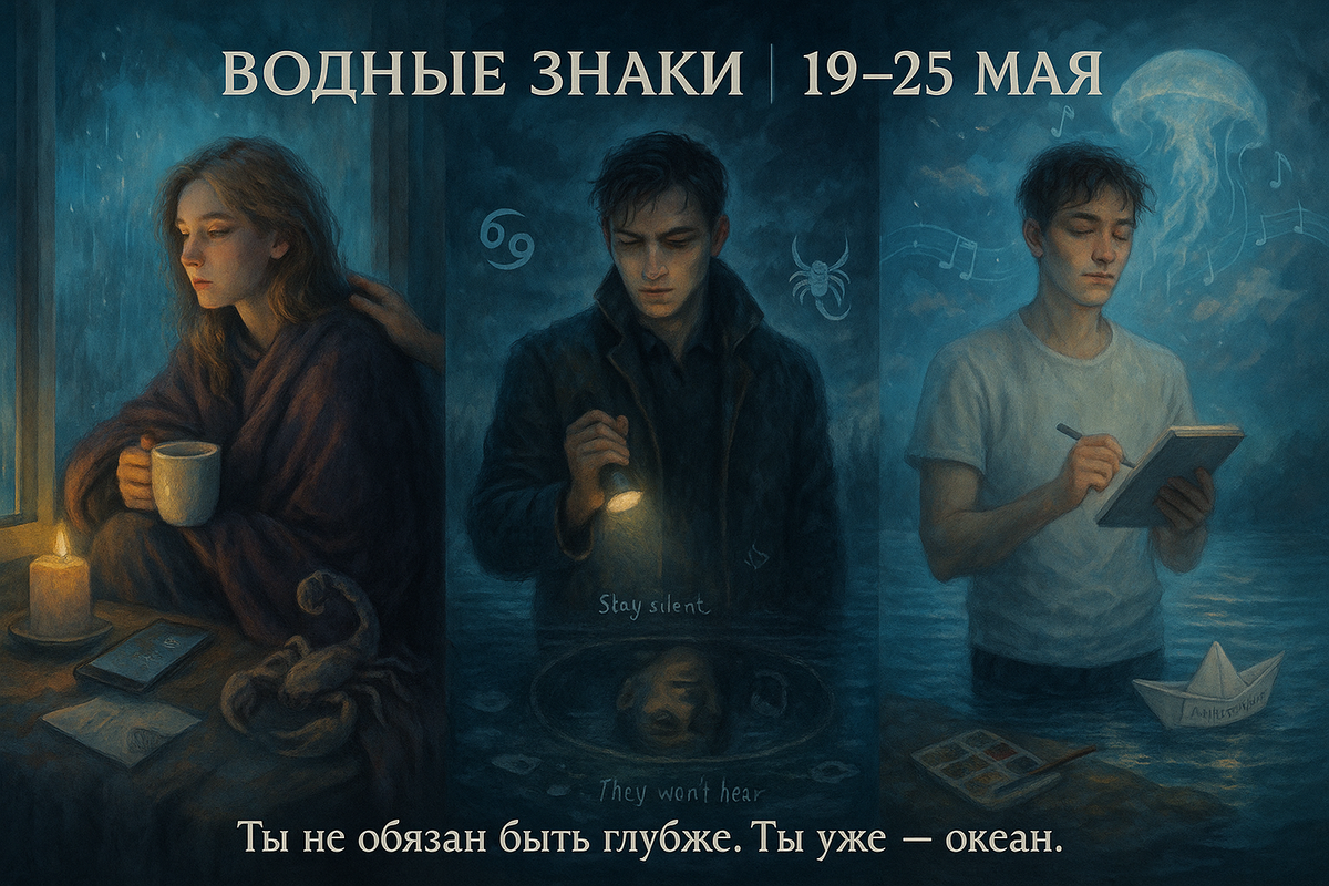 Вы не просто переживаете — вы проживаете. Пока остальные делают выводы, вы уже утонули в ощущениях, побывали на дне и всплыли с инсайтом. Неделя принесёт мягкие шторма. Главное — не плыть против себя. Ты — как плед на холодном ветру: все хотят спрятаться в тебе, а ты сам мерзнешь. Ты встречаешь неделю с потребностью спрятаться: от задач, звонков, мира. Всё вокруг кажется шумным, а внутри — слишком много. Близкие что-то хотят, ты сам от себя чего-то хочешь, но ответа нет. С 20 мая Солнце в Близнецах вытаскивает наружу: тебя начинают звать, вовлекать, общаться. А ты хочешь обратно в раковину. В среду–пятницу может случиться перегруз. 22 мая Венера с Марсом подбрасывают эмоции: возможно, кто-то появится. Или вернётся. Или исчезнет. Ты почувствуешь каждое движение — даже если оно не твоё. На выходных — только бережно. Вода, тепло, одиночество или самый тёплый человек. Ты не обязан быть в ресурсе. Ты обязан быть жив. Ты — как пароль от Wi-Fi: снаружи неразгадан, внутри — вся мощь. Ты начина