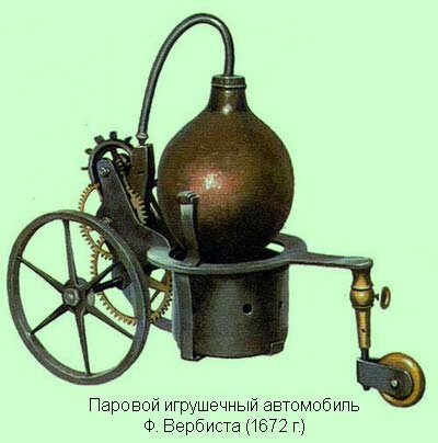 Истоки идеи автомобиля теряются в глубине веков. Уже в 1672 году для китайского императора был создан маленький паровой игрушечный экипаж — работа монаха-изобретателя Фердинанда Вербиста. Можно ли назвать это автомобилем? Вряд ли. Однако же начало было положено.