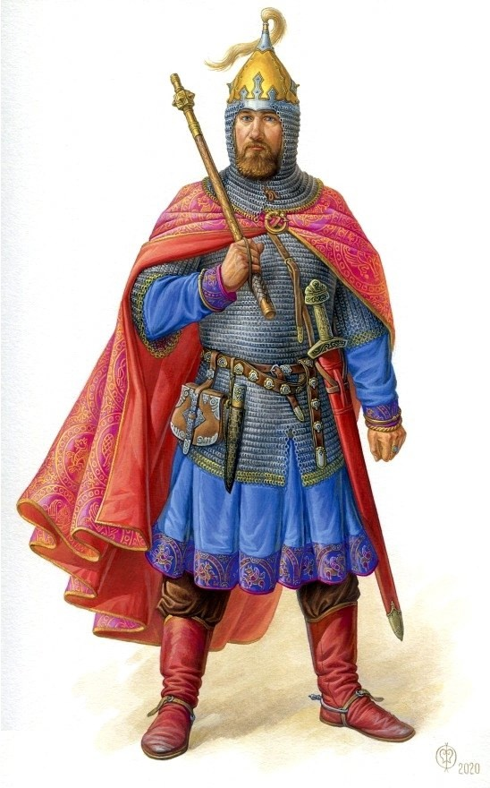 «Варварский» период развития Руси к концу X века переживал закат. Отгремели дальние походы Святослава Игоревича, главным результатом которых стало перемещение торгового трансевразийского пути с Волги на Днепр. Торговля «из варяг в греки» - от Скандинавии и севера Восточной Европы до Византии, Южной Европы и Ближнего востока – целиком перешла под контроль владыки Руси. Старший сын Святослава Владимир упорно трудился над укреплением связей растянувшейся с севера на юг державы, все прочнее связывая Киев с Новгородом. Его усилия привели к принятию христианства – единой религии для многоплеменной «империи». На Русь потекли не только богословская премудрость и чудеса церковного искусства, но и военные трактаты, военная «мода» Византии. Византийский импульс явился последним мазком, после которого комплекс воинского снаряжения на Руси полностью сложился и изменялся несколько последующих веков уже за счет внутреннего развития. Оружие русского дружинника, который, как правило, был теперь коннико