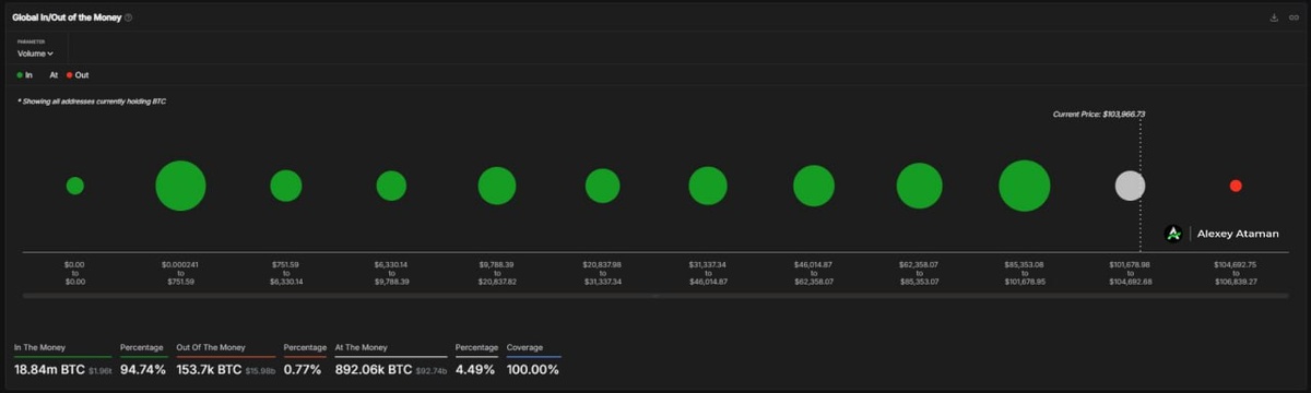 Это показывает, что большинство держателей BTC находятся в плюсе, что часто коррелирует с позитивными ожиданиями инвесторов.