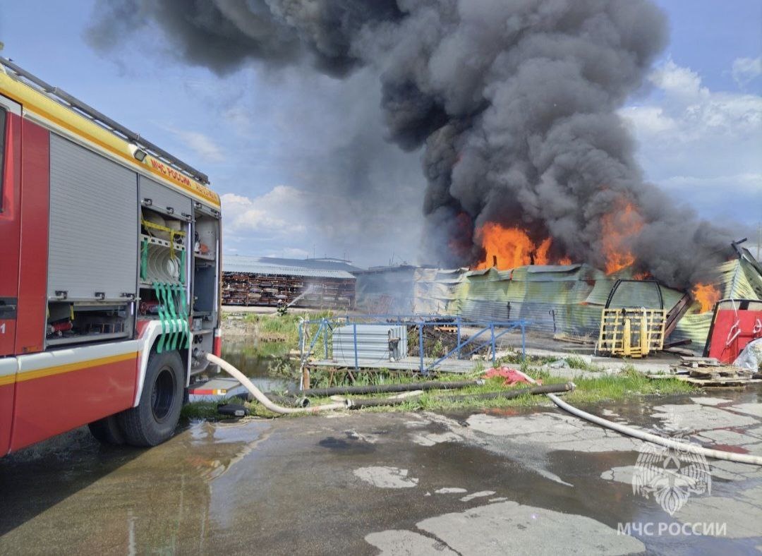 Крупный пожар в городе Бор. В Железнодорожном загорелся склад пленки для лобовых стекол. Площадь пожара 270 кв. м. К счастью, пострадавших нет. Работы по тушению пожара продолжаются.