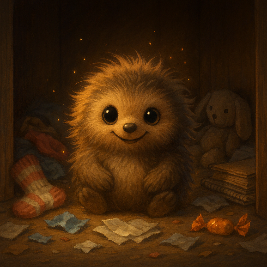 У Маши-Растеряши появился друг. Самый настоящий — только невидимый. Он жил в шкафу, прямо за стопкой одеял, звал себя Тюпа и, по словам Маши, был очень весёлым и слегка неаккуратным. — Он такой… ну, немного лохматый. Чуть-чуть как ёжик, чуть-чуть как подушка, — объясняла Маша бабушке. — Но очень добрый. И смешной. С ним вообще не скучно! Однако с тех пор как Тюпа поселился в шкафу, в доме начали пропадать вещи. Сначала — носки. Потом — резинки для волос. А однажды исчез целый банан. — Это не я, это Тюпа, — уверенно говорила Маша. — Он любит прятать всякие мелочи. Такие у него шутки. — А носки кто опять утащил? — прищурилась бабушка. — Наверное, Тюпа. Он же обожает прятки, — пожала плечами Маша. — А кто съел шоколадку прямо с обёрткой? — спрашивала мама, заглянув в буфет. — Ну точно не я! Наверное, Тюпа не разобрался, — вздохнула Маша. Пропадало всё: конфеты, карандаши, чайные ложки, мамины украшения и даже один башмак. И всегда — «это Тюпа». Мама хмыкала, бабушка качала головой, а Крот