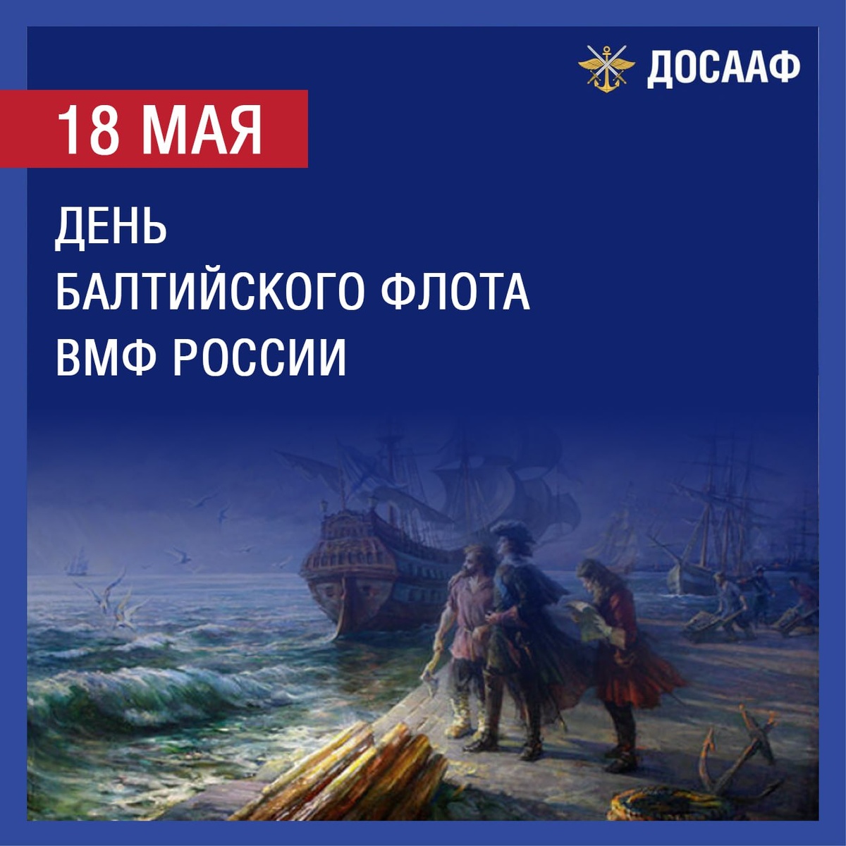 18 мая – День Балтийского флота ВМФ России В этот день в 1703 году флотилия из 30 лодок с солдатами Преображенского и Семеновского полков под командованием Петра I захватила в устье реки Невы два шведских военных корабля. В этом же году был построен первый морской корабль для Балтийского флота – фрегат «Штандарт». В 1704 году основана крепость Кроншлот – первый форт Кронштадта, базы русского флота на Балтике. Эти просторы стали колыбелью российского военно-морского флота, а моряки-балтийцы вписали немало героических страниц в летопись страны: побеждали в Гангутском и Гренгамском сражениях, героически обороняли Кронштадт и Ленинград, освобождали Прибалтику в годы Великой Отечественной войны. Сегодня Балтийский флот – это современные корабли, новейшие технологии и профессиональные экипажи, продолжающие славные традиции предков. Особую роль в подготовке кадров для флота имеет ДОСААФ России. Через сеть морских клубов, учебных центров и патриотических программ мы готовим будущих моряк