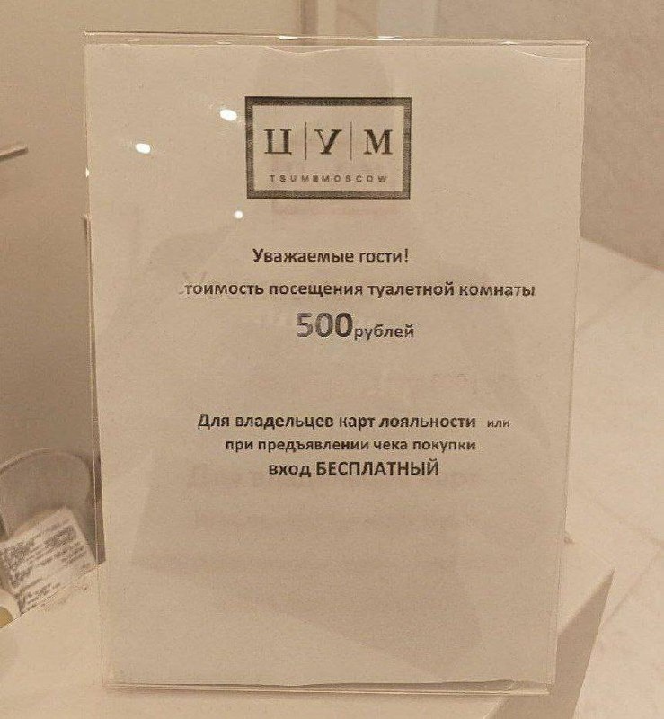 Скока: ЦУМ поднял цену за платный туалет до (!) 500 рублей. Москвичи, как дела у вас в целом?