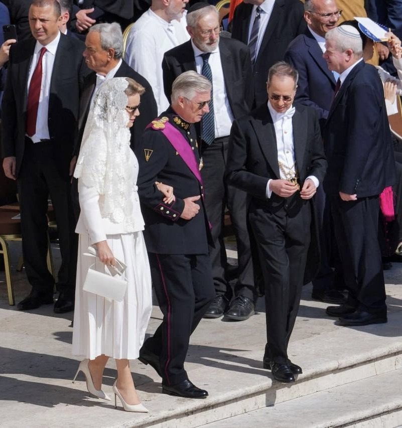И королевы использовали свое "Право белого!" Это самые первые фото с инаугурации папы римского. Утром я подробно рассказала , кто может получить привилегию появиться в белом, а не в черном. Интересно, что на этот раз испанская королева Летиция выбрала белое. Матильда также была в белом и не снимала солнечные очки, хотя протокол этого мини-королевства их не любит. США в этот раз представлял Джей Ди Венс с супругой. Я ставлю лишь первые фото, подробный обзор будет позднее.