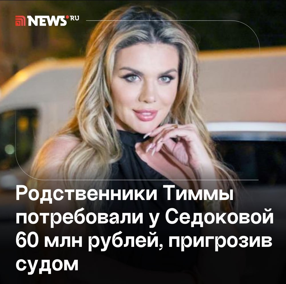 Родственники Яниса Тиммы требуют от его экс-жены Анны Седоковой 60 млн рублей от продажи общей квартиры — деньги хотят отдать сыну баскетболиста от первого брака. Бывшие супруги купили жилье в 2022 году в столичном элитном ЖК «Алые Паруса». В сентябре 2024 года Седокова продала квартиру за 150 млн рублей, а ровно через месяц подала на развод, пишут СМИ. Теперь адвокат родственников Тиммы запустил процесс по получению средств. Сама же Седокова не выходит на связь и врет о том, что спортсмен жил за ее счет, рассказала представительница семьи погибшего. У адвокатов есть доказательства о состоятельности баскетболиста, который получал зарплату в «Химках», а также продал квартиру и две машины в Латвии. Родственники заявляют, что хотят решить все мирным путем, но если начнутся проблемы, подадут в суд. ⭕️ Подписаться | Прислать новость | Буст