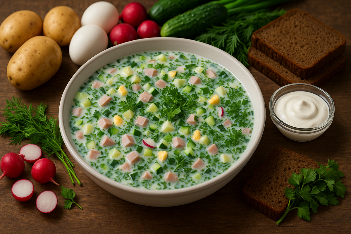 Есть блюда, к которым возвращаешься каждую весну, как к любимому ритуалу. Окрошка — как раз из таких. У каждого своя: с колбасой, говядиной, на квасе, на сыворотке. Сегодня расскажу о моей любимой — на кефире. Лёгкая, но сытная, освежающая, но насыщенная. Идеальна для первых тёплых дней, когда хочется прохлады и ярких вкусов. Этот рецепт — из детства: бабушка нарезала всё вручную, а зелень собирала с огорода. Мы ели её всей семьёй с чёрным хлебом и ложкой сметаны. Сейчас я повторяю этот ритуал каждую весну. 1. Подготовка овощей Картофель отвариваем в мундире до готовности, остужаем, очищаем и нарезаем мелкими кубиками. Важно не переварить, иначе в окрошке будет "каша". 2. Яйца Отвариваем вкрутую (8–10 минут), остужаем в холодной воде, чистим и мелко режем. Желтки можно растереть с горчицей — получится пикантная заправка. 3. Огурцы и редис Нарезаем мелкими кубиками или тонкой соломкой. Если шкурка у огурцов жёсткая — срезаем. Редис добавляет хруст и свежесть, не стоит его жалеть. 4. Кол