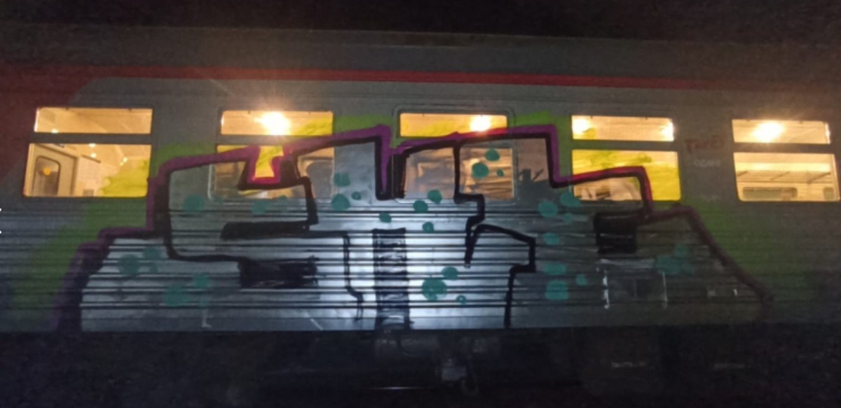 🚂 Вандал-рецидивист разрисовал поезд в Волховстрое. Полиция задержала «художника».