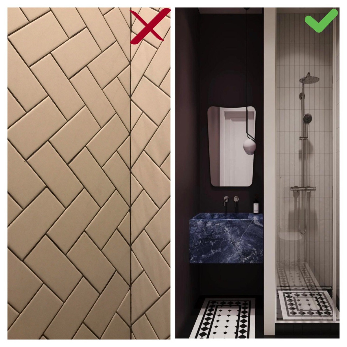 Создавая новые интерьеры, не укладывайте плитку «ёлочкой». Такая раскладка, что называется, прошлый век. Как и плитка со срезами по периметру и кафель в стиле «пэчворк», а также плитки-шестигранники. Что касается укладки плитки, актуально комбинировать плитку с влагостойкой краской или микроцементом. Все стены обрамлять в плитку – антитренд.