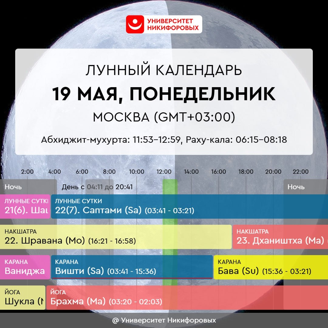 19 МАЯ, ПОНЕДЕЛЬНИК Энергетика дня с ярким рабочим настроем и скрытым внутри ранимо-эмоциональным шлейфом, неудовлетворенностью от выполненного, от происходящего в целом. Монотонная деятельность будет терапевтична, особенно если ориентироваться не на результат, а на процесс. Займитесь тем, что давно откладывали и что не очень внушало энтузиазм – подобные процессы сегодня пойдут легче, и в итоге можно получить приятную гору с плеч. Чем бы вы не занимались, прислушивайтесь к своему телу, своему состоянию. Если что-то идет не так или накатывает разочарование, раздражение и т.п., то не игнорируйте это напрочь, а локализуйте в теле эти эмоции, дайте им право на существование, а затем продышите их или направьте луч исцеляющего внимания на них. Легко будет усваиваться любая информация на слух, особенно до 5 вечера – используйте эту силу дня для своего обучения и для обучения детей.