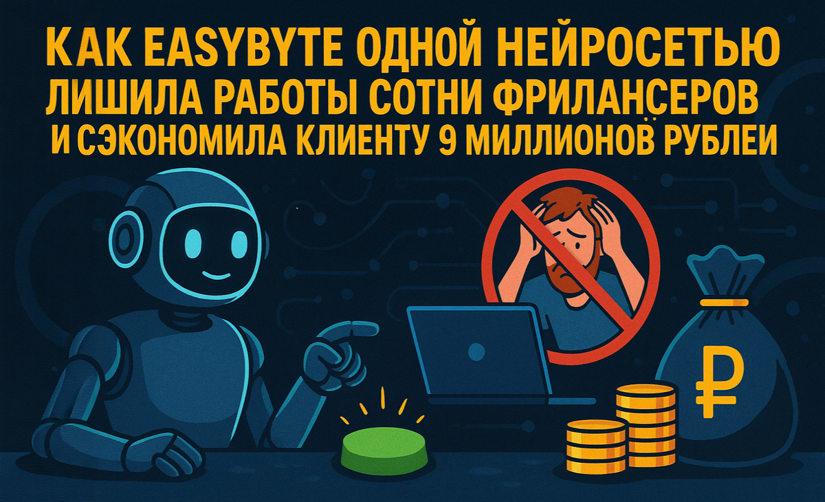 Как EasyByte одной нейросетью лишила работы сотни фрилансеров и сэкономила клиенту 9 миллионов рублей в год