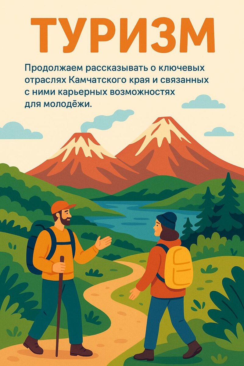 Мы продолжаем рубрику, посвященную различным отраслям Камчатского края. Сегодня мы предлагаем поговорить про туризм. Согласно данным “Российской газеты” внутренний туризм в России бьет рекорды: в 2024 году россияне отправились в путешествия по стране более 91 млн раз — почти на 14% чаще, чем год назад. Деньги в отрасль приходят тоже активно, плюс 12–14% ежегодно. Вместе с этим растет и спрос на работников в сфере туризма. Камчатский край выбран одним из перспективных пилотных регионов для реализации мероприятий Национального проекта «Туризм и индустрия гостеприимства». Возможности для этой отрасли в регионе позволяют выпускникам школ, колледжей и университетов реализоваться как в частных, так и в государственных предприятиях. Уже к 2026 году на Камчатке планируется реализация сразу нескольких проектов: “Организация этнокультурного комплекса”, строительство туристической базы отдыха с этнопарком KAMCHATKAFORT, парк “Три Вулкана” и т.д. Диапазон профессий в туристической отрасли также мн