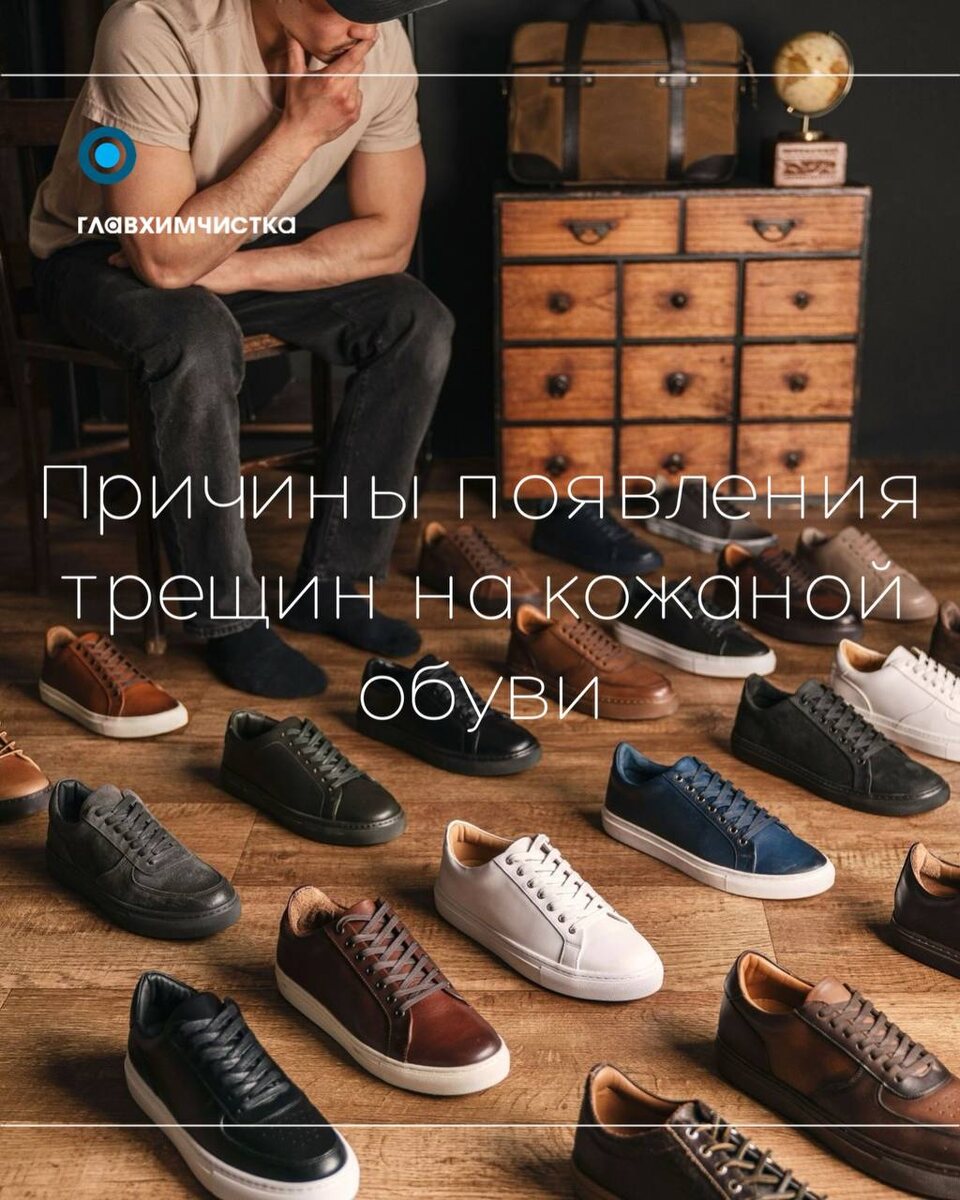 Причины появления трещин на кожаной обуви "Причины появления трещин на кожаной обуви: • Недостаточный уход за кожей • Частые мокрые и сухие условия • Возраст и износ материала • Несоответствующая чистка Советы по уходу от Главхимчистки: Шаг 1: Протирайте обувь мягкой влажной тканью, чтобы очистить от загрязнений и не повредить кожу при обработке. Шаг 2: Используйте специальный крем или восковое средство для восстановления эластичности кожи. • Наносите средство тонким слоем. • Оставьте на 10–15 минут, чтобы кожа впитала его. • Это предотвратит трещины. Шаг 3: Регулярно наносите крем для кожи или кондиционер. Используйте специальную защиту от воды и грязи для кожи. Храните обувь в сухом месте, избегайте прямого солнечного света. Если на вашей обуви уже появились трещины... Профессиональная чистка и ремонт помогут восстановить её внешний вид и продлить срок службы. Доверьтесь специалистам — мы знаем, как вернуть коже её эластичность!"