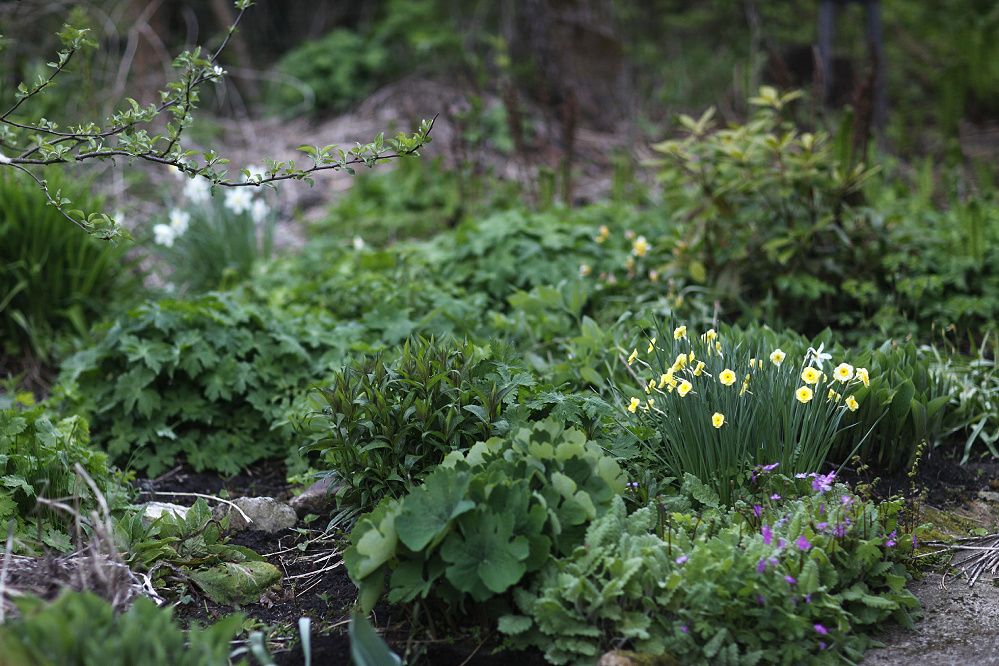 Тут в основном цветут какие-то мелкие нарциссы и примула кортузовидная.