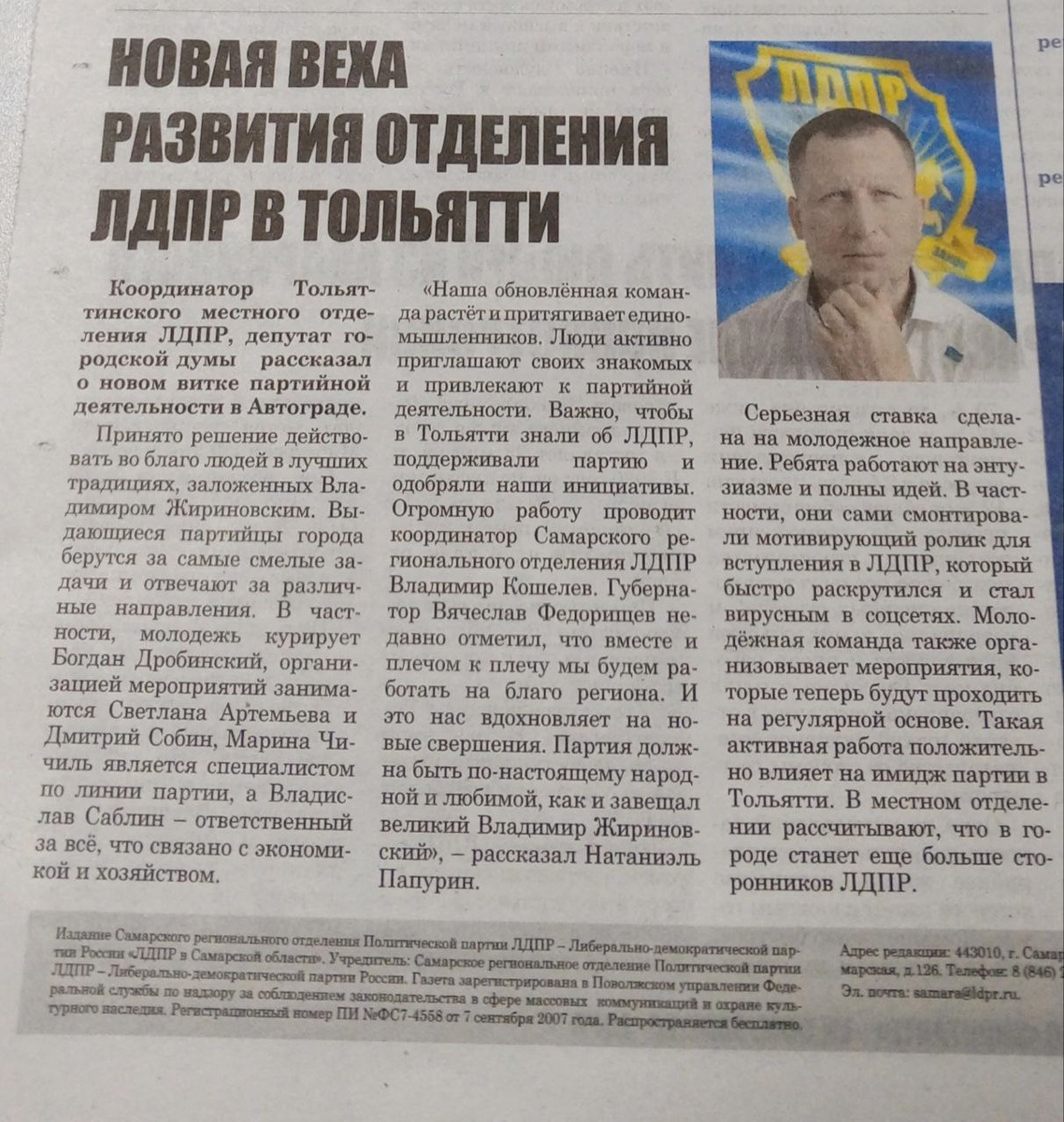 СВЕЖИЙ ВЫПУСК ГАЗЕТЫ✏️ 🔥 Друзья, сегодня мы с отличными новостями! В свежем выпуске газеты ЛДПР опубликован материал о развитии нашего местного отделения. Приятно видеть, что нашу активную работу замечают — о нас пишут, выделяют достижения, и это значит, что мы движемся в правильном направлении. Сейчас как никогда важно не сбавлять темп: развивать местные отделения, укреплять взаимодействие между активистами, вовлекать новых сторонников и делать нашу работу заметной и эффективной. Каждый из нас — часть большого дела. 📰 Газета уже вышла в свет. Кому интересно — можно подойти и получить экземпляр: для личного прочтения и, что особенно важно, для раздачи среди жителей. Пусть как можно больше людей узнают о нашей деятельности и присоединяются!