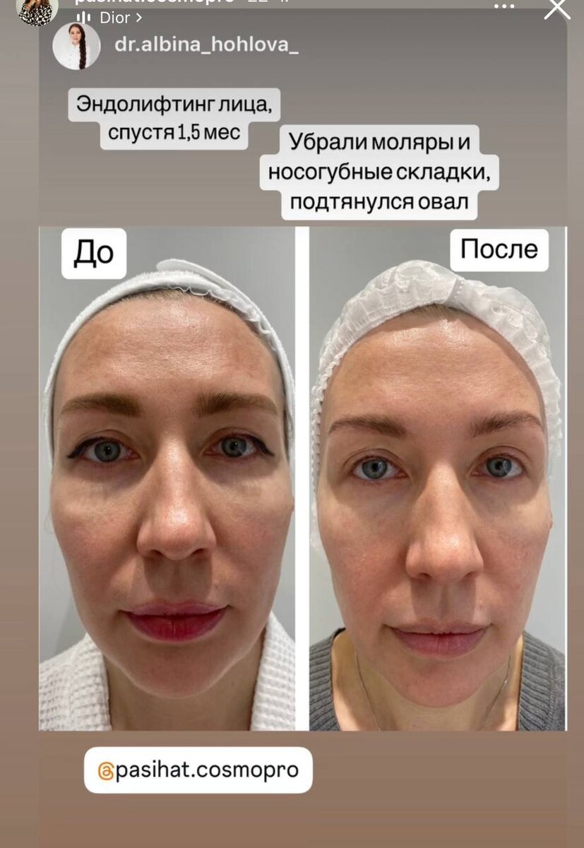 Фото не наши Когда то мне думалось об этом Эндолифт. Через прокол в коже вводится проволочка и изнутри происходит лазерная подтяжка лица . Стоит как и вся аппаратная косметология « как крыло самолета»))) Вот вчера писала про не фотошопленный результаты. Фото до после наших коллег после Эндолифт. Так выглядит реальный результат от процедуры ценой 70.000₽ на данном аппарате на худенькое лицо с подобным морфотипом. И это хороший результат. Уверена, что вживую женщина выглядит еще прекраснее и видит изменения. Но я с такими лицами люблю работать мезонитками. 🩷👌🏻