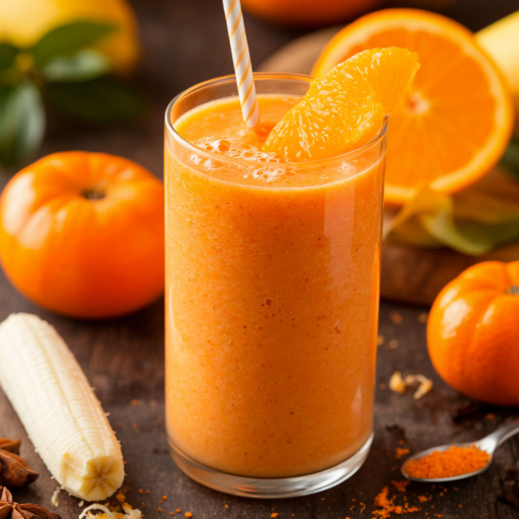 Приготовим яркий и витаминный смузи с хурмой, бананом и апельсином – отличный способ зарядиться энергией и поднять настроение! Нам понадобится всего несколько простых ингредиентов: одна спелая хурма, один сочный апельсин, один банан, щепотка ароматной молотой корицы и немного свежей мяты для украшения. Начнем с подготовки фруктов. Хурму тщательно моем и нарезаем на кусочки, удаляя косточки, если они есть. Апельсин очищаем от кожуры и разделяем на дольки, также удаляя косточки. Банан очищаем от кожуры и нарезаем кружочками. Теперь берем блендер и помещаем в него хурму, апельсин и банан. Добавляем щепотку молотой корицы – она придаст смузи теплый и пряный аромат. Взбиваем все ингредиенты в блендере до получения однородной массы. Если смузи получается слишком густым, можно добавить немного воды или апельсинового сока. Переливаем готовый смузи в стакан. Для красоты и аромата украшаем напиток листиками свежей мяты. Этот смузи не только вкусный, но и очень полезный, ведь он богат витаминами и антиоксидантами. Наслаждайтесь каждым глотком этого солнечного напитка! Приятного аппетита!