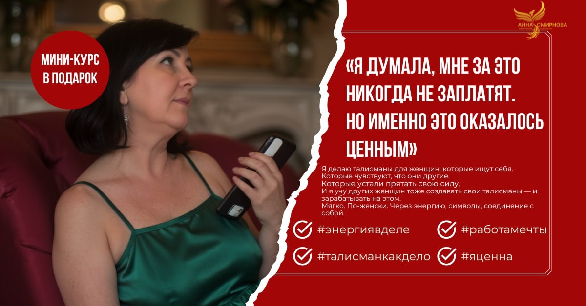 «Я думала, мне за это никогда не заплатят. Но именно это оказалось ценным» Есть вещи, которые мы делаем всей душой. Вкладываем в них тишину, тепло, боль, надежду. А потом тихо убираем в ящик. Потому что в голове звучит: «Ну кто за это заплатит?..» 💔 Я стеснялась своего таланта Я всегда чувствовала: у меня «что-то есть». Я умела видеть между строк, слышать чужое состояние, чувствовать, куда «тянет». И через это приходили образы. Символы. Рисунки, которые будто не я создавала, а кто-то через меня. Но я боялась показать это. Потому что мне казалось — это странно. Непрофессионально. Непрактично. Не имеет цены. 📦 Я прятала свои талисманы в тетрадке Иногда рисовала ночью. Иногда писала намерения, ритуалы, образы, схемы. И прятала. Покажешь кому — засмеют. Попробуешь продать — скажут «шарлатанка». Так я сама обесценивала то, что было для меня настоящим. Потому что с детства впитала: “деньги платят за что-то серьёзное” А творчество — это «хобби». 🔥 А потом я выложила одну работу. Прост