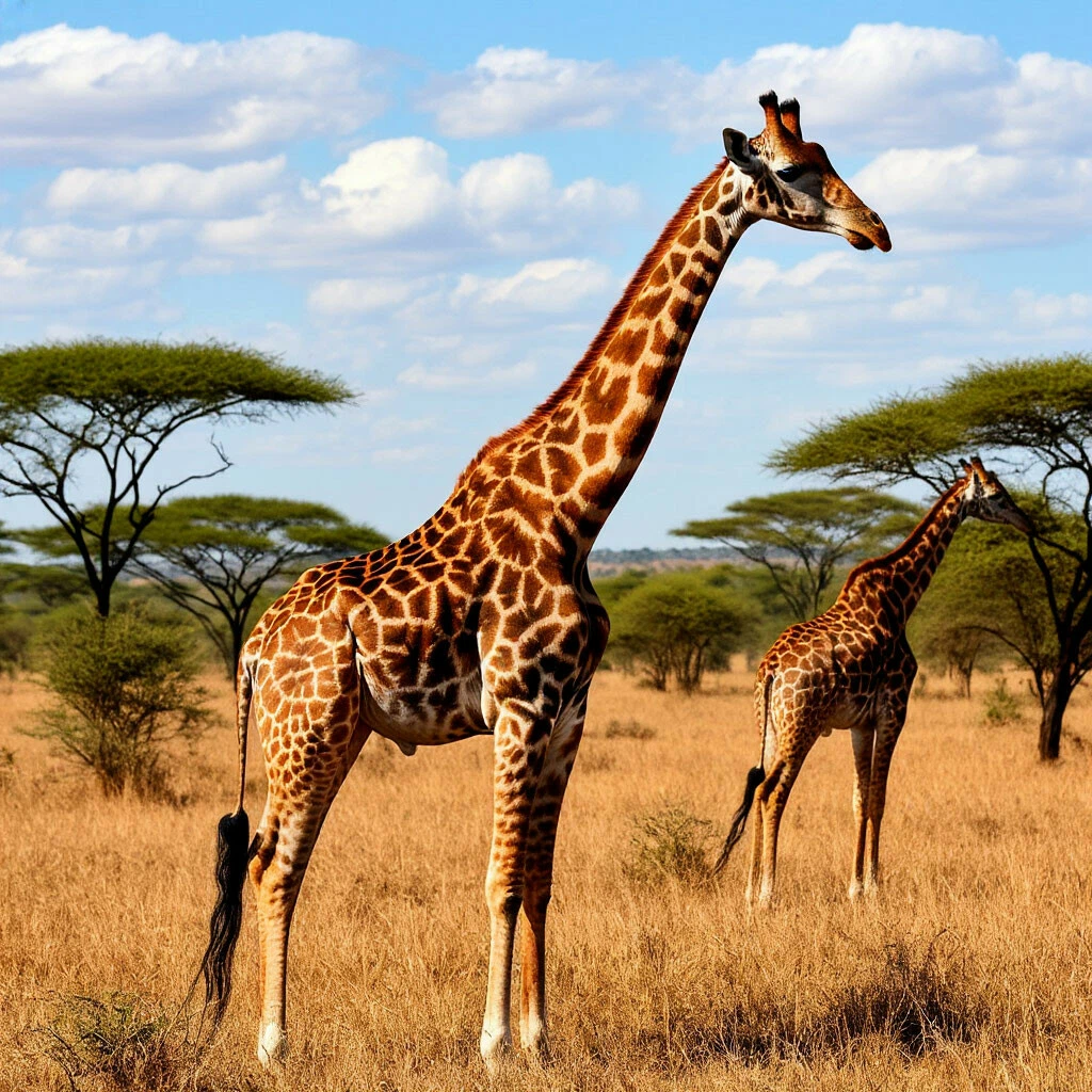 Когда они вдоволь насмотрелись на этих хищников саванны, Константин повёз их дальше и вскоре они увидели жирафов, неспешно общипывающих листья с высоких деревьев. Их длинные шеи и пятнистая окраска делали их похожими на ожившие картины. Птицы, с ярким оперением, перелетали с дерева на дерево, наполняя воздух мелодичным щебетом.