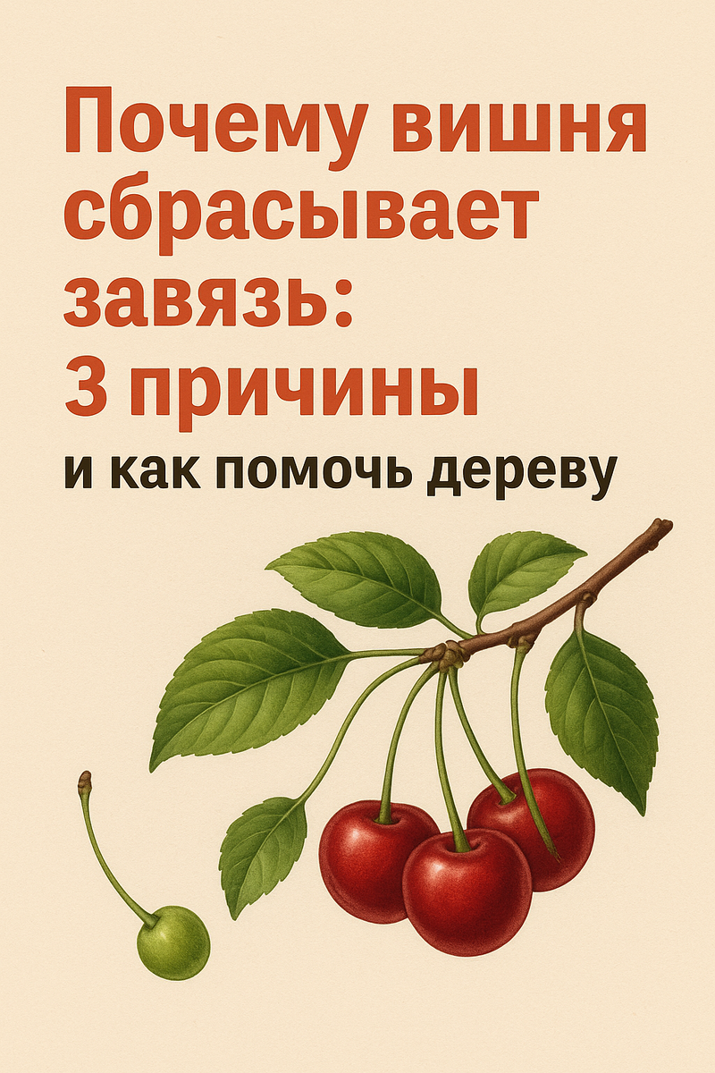 Вы ждали урожай вишни, а вместо этого — опавшие завязи под деревом? Такое случается часто и даже с самыми ухоженными деревьями. Завязались плоды — и вдруг начали осыпаться, не дожив до зрелости. Что происходит? В этой статье разберём три главные причины, по которым вишня сбрасывает завязь, и расскажем, что можно сделать, чтобы сохранить урожай. 📍 Причина №1: Недоедание — нехватка питательных веществ Суть проблемы: Цветение и образование завязей требуют от вишни большой отдачи. Если в почве мало питательных веществ — особенно азота, калия и кальция — дерево не может «прокормить» все завязавшиеся плоды и сбрасывает часть из них. Это своего рода защитный механизм. Как распознать: Что делать: Полезно знать: Особенно важно кормить дерево в фазу завязывания плодов — с конца мая до середины июня. 📍 Причина №2: Перепады погоды и заморозки Суть проблемы: Весна и начало лета — время нестабильной погоды. Даже один холодный день может повредить завязи, особенно если вишня попа